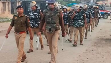 त्योहारों को ध्यान में रखकर क्षेत्राधिकार की अगुवाई में फ्लैग मार्च।