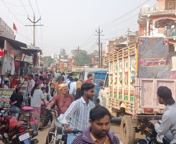 नगर पंचायत खखरेरू में जाम की समस्या बनी हुई है, एम्बुलेंस भी फंसी
