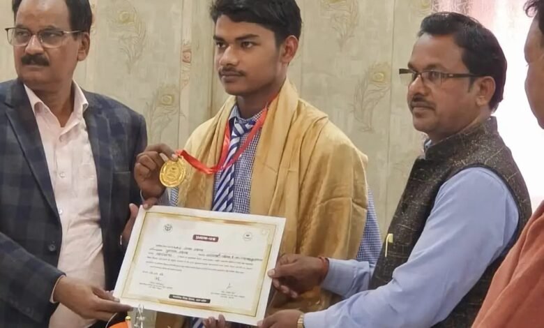 छात्र को जिला विद्यालय निरीक्षक ने किया सम्मानित।