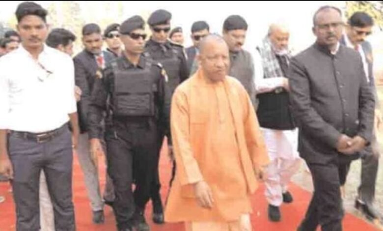 अभूतपूर्व सुरक्षा के बीच महराजगंज में उतरा मुख्यमंत्री का उड़नखटोला।