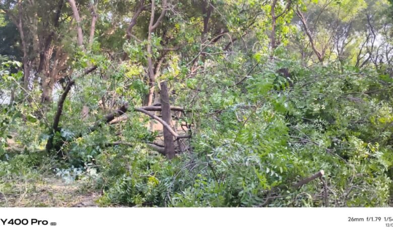 लगभग दो दर्जन से अधिक पेड़ ठेकेदार द्वारा धराशाई