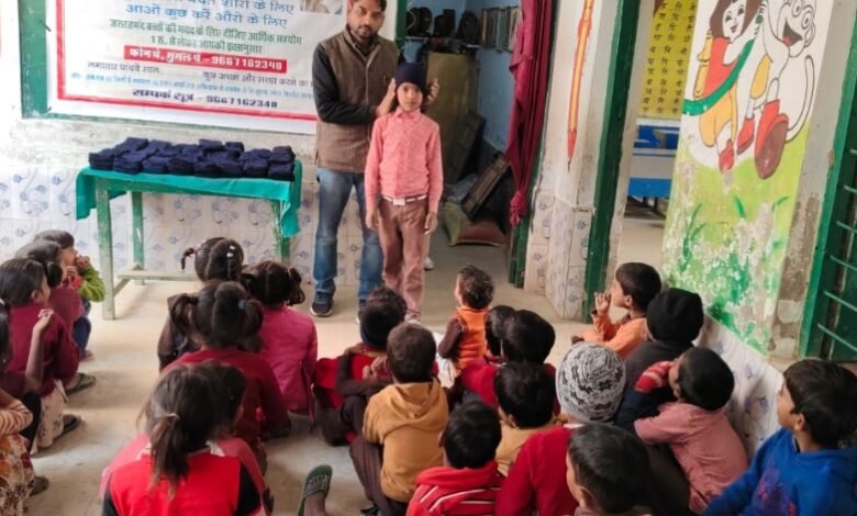 यूनियर फाउंडेशन ने किया बच्चों की टोपी का वितरण।