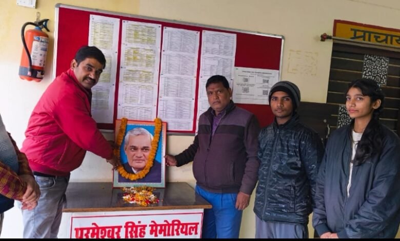 आज परमेश्वर सिंह मेमोरियल पीजी कॉलेज आनंद नगर महाराजगंज में पूर्व प्रधानमंत्री अटल बिहारी वाजपेई का जन्मोत्सव धूमधाम से मनाया गया कार्यक्रम का प्रारंभ महाविद्यालय के प्राचार्य डॉ अशोक भारतीय ने बाजपेई जी के चित्र पर माल्यार्पण से किया उन्होंने छात्रों को संबोधित करते हुए बताया कि अटल बिहारी वाजपेयी (25 दिसंबर 1924 – 16 अगस्त 2018) एक भारतीय कवि, लेखक और राजनेता थे, जिन्होंने भारत के प्रधान मंत्री के रूप में कार्य किया, पहली बार 1996 में 13 दिनों की अवधि के लिए, फिर 1998 से 1999 तक 13 महीने की अवधि के लिए, उसके बाद1999 से2004 तक पूर्ण कार्यकाल के लिए। उनकी विदेश नीति व आर्थिक नीति आज तक सराहनीय है कार्यालय अधीक्षक अरुण कुमार सिंह ने बताया कि अटल बिहारी वाजपेई के जन्मदिवस को सुशासन दिवस के रूप में मनाया जाता है इसका उद्देश्य देश में पारदर्शी और जवाबदेह प्रशासन प्रदान करने के लिए सरकार की प्रतिबद्धता के बारे में लोगों को जागरूक करना है। विज्ञान संकाय अध्यक्ष के.पी. सिंह ने बताया कि पूर्व प्रधानमंत्री स्व. अटल बिहारी वाजपेई में कई खूबियां थी। अपनी पार्टी का नेता हो या विरोधी पार्टी का, सबको साथ लेकर चलने की खूबी उन्हें दूसरे नेताओं से अलग करती थी। यही कारण था कि उन्हें राजनीति का अजातशत्रु भी कहा जाता था। कार्यक्रम का संचालन बी.एड प्रवक्ता मुरलीधर जायसवाल ने किया I कार्यक्रम में उपस्थित जनों कार्यालय व प्रवक्ता गण में राजेश सिंह, अश्वनी सिंह, जमुना निषाद, सुरेश यादव, अरविंद, अखंड प्रताप सिंह, आयुष सिंह, राजेश चौधरी आदि रहे।