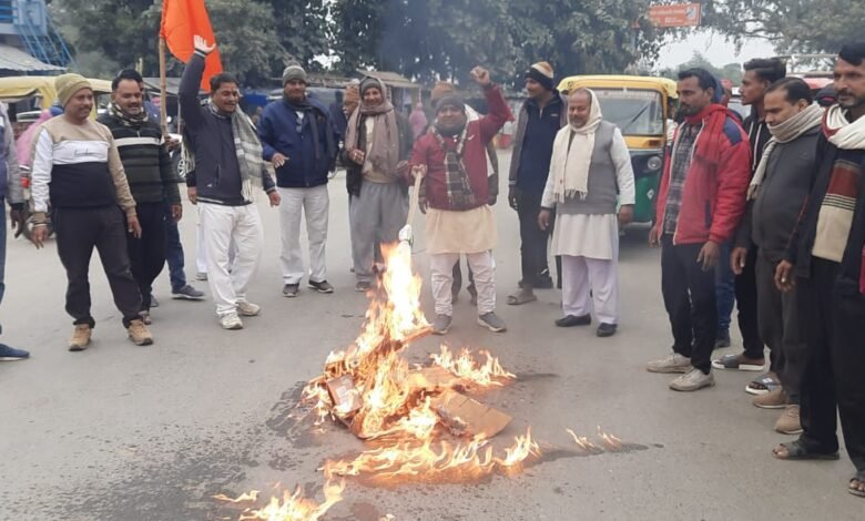 इस दौरान विरोध प्रदर्शन करते हुए पुतले के साथ जुलूस भी निकल गया।