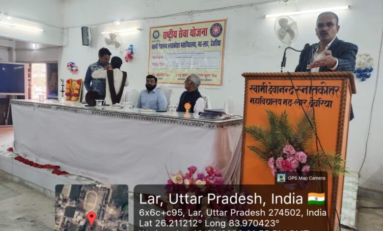 बुधवार को स्वामी देवानंद पी जी कॉलेज मठ लार देवरिया उत्तर प्रदेश के लार नगर क्षेत्र के धवरिया वार्ड में राष्ट्रीय सेवा योजन के सप्त दिवसीय विशेष शिविर के चौथे दिन प्रथम सत्र में मुख्य वक्त संस्कृत महाविद्यालय के प्राचार्य डॉक्टर प्रदीप शर्मा ने वैदिक शिक्षा को आधुनिक शिक्षा से तुलना करते हुए बच्चों को बताया कि वर्तमान शिक्षा केवल पैसा कमाने तक सिमित हो गया है तथा विद्यार्थियों को मशीन बना रहिये है परन्तु वैदिक कल कि शिक्षा मनुष्य को समजा के प्रति संवेदनशील और विनम्र बनाने में साहयोगी थी इस अवसर पर स्वामी देवानंद पी जी कॉलेज के प्राचार्य प्रोफेसर बी एन सिंह ने वेद कि शाखाओं और उनके महत्व पर जोर दिया।