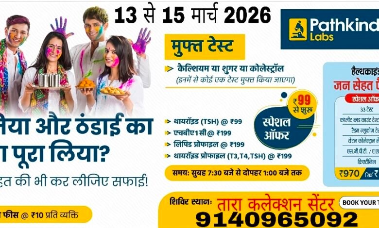 "कैम्प दिनांक 13, 14 और 15 मार्च 2026 को प्रातः 7 बजे से दोपहर 1 बजे तक किया जा रहा है।"