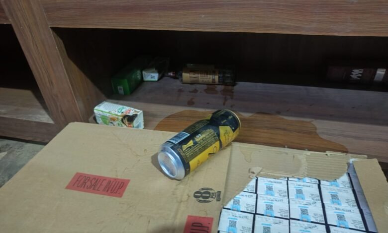 अंग्रेजी शराब की दुकान में चोरी व तोड़फोड़