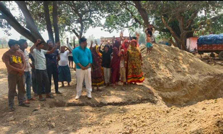 पानी की टंकी बनाने के विरोध में ग्रामीणों ने किया प्रदर्शन ।