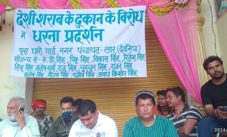 देवरिया। बुधवार को नगर पंचायत लार के घारी वार्ड के लोग देसी शराब की दुकान के विरोध में प्रदर्शन किए। पूर्व सभासद के डी सिंह के नेतृत्व में नगर वासी एकत्रित हुए और देसी शराब नहीं खुलेगा का नारा लगाए। विरोध प्रदर्शन में महिलाएं भी थीं।