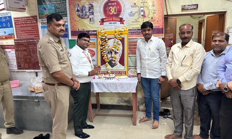 बैंक कर्मियों ने केक काटकर धूमधाम से मनाया 130 वां स्थापना दिवस