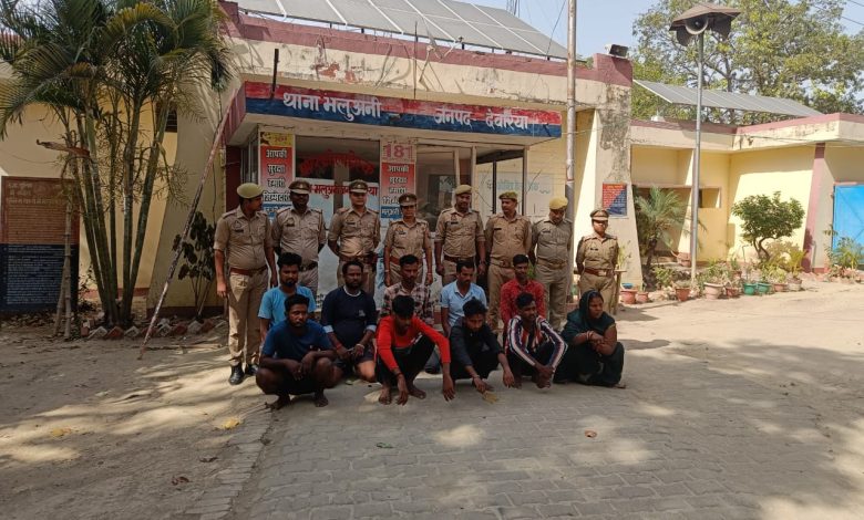 देवरिया।थाना भलुअनी क्षेत्रान्तर्गत ग्राम तेनुआ चौबे में मारपीट के दौरान एक व्यक्ति अशोक चौबे पुत्र सदानन्द चौबे उम्र 65 वर्ष के मृत्यु होने जाने के सम्बन्ध में वादी संजय चौबे पुत्र स्व0अशोक चौबे निवासी तेनुआ चौबे की तहरीर के आधार पर थाना भलुअनी में मु0अ0सं0 76/24 धारा 147,148,323,504,506 व 302 भादंवि का अभियोग 10 नामजद व दो-तीन अज्ञात अभियुक्तों के विरुद्ध केस दर्ज हुआ। पुलिस टीम द्वारा कुल 10 अभियुक्तों क्रमशः1.किशन कुमार पुत्र सुभाष प्रसाद ग्राम तेनुआ चौबे थाना भलुअनी जनपद देवरिया 2.मुकेश पासवान पुत्र परदेशी पासवान ग्राम तेनुआ चौबे थाना भलुअनी जनपद देवरिया 3. मोनू पासवान पुत्र होशिला पासवान ग्राम तेनुआ चौबे थाना भलुअनी जनपद देवरिया 4.मीरा पासवान पत्नी होशिला पासवान ग्राम तेनुआ चौबे थाना भलुअनी जनपद देवरिया 5. मुकेश पासवान पुत्र रामकिशुन पासवान ग्राम चकदेहिज थाना चौरी जनपद गोरखपुर 6.श्रीराम पासवान पुत्र हरिद्वार पासवान ग्राम तेनुआ चौबे थाना भलुअनी जनपद देवरिया 7.पन्नेलाल पासवान पुत्र कोलाहल ग्राम तेनुआ चौबे थाना भलुअनी जनपद देवरिया 8. सोनू पासवान पुत्र होशिला ग्राम तेनुआ चौबे थाना भलुअनी जनपद देवरिया 9. रुदल भारती पुत्र अभि भारती ग्राम तेनुआ चौबे थाना भलुअनी जनपद देवरिया 10. मनीष प्रसाद पुत्र सुभाष प्रसाद ग्राम तेनुआ चौबे थाना भलुअनी जनपद देवरिया को गिरफ्तार कर लिया गया है।