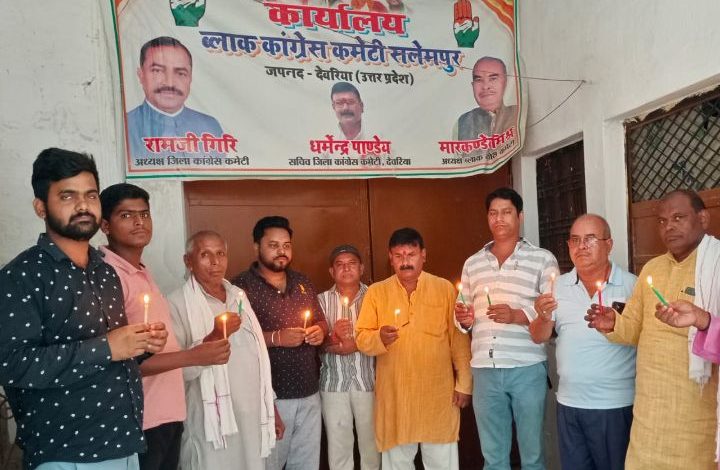 देवरिया।पंडित दीनदयाल उपाध्याय आश्रम पद्वति आश्रम विद्यालय मेहरौना में बासी भोजन खाने से फूड प्वायजनिंग के शिकार हुए बच्चों में से मेडिकल कॉलेज गोरखपुर में इलाज के दौरान मृत छात्र शिवम को कांग्रेस कार्यकर्ताओं ने ब्लॉक कार्यालय सलेमपुर पर बैठक कर विनम्र श्रद्धांजलि अर्पित किया। इस दौरान सम्बोधित करते हुए जिला महासचिव डॉ धर्मेन्द्र पाण्डेय ने कहा कि बच्चों के जीवन के साथ खिलवाड़ करने वाले दोषियों के खिलाफ हत्या का मुकदमा दर्ज कर उन्हें कठोर सजा दी जाए, जिससे कि कोई भी इस तरह की गलती फिर न करें। जिन बच्चों का इलाज चल रहा है उन्हें और बेहतर इलाज की व्यवस्था की जाए जिससे कि वह जल्द स्वस्थ हो सके। सलेमपुर विधानसभा क्षेत्र के नेता दीनदयाल प्रसाद ने कहा कि गरीब बच्चों के जीवन को खतरे में डालने वाले लोगों को उच्च स्तरीय जांच कराकर असली जिम्मेदार लोगों को सजा दी जाए। युवा कांग्रेस के जिलाध्यक्ष गोविंद मिश्र ने कहा कि अगर दोषियों के खिलाफ उचित कार्यवाही नहीं हुई तो कांग्रेस का एक एक कार्यकर्ता न्याय दिलाने तक संघर्ष करेगा। अंत मे मृत छात्र को कैंडल जलाकर विनम्र श्रद्धांजलि अर्पित किया गया।इस दौरान ब्लॉक अध्यक्ष मार्कण्डेय मिश्र, अभिनीत उपाध्याय, सत्यम पाण्डेय, चुन्नु श्रीवास्तव, सुरेन्द्र यादव, विशाल कुमार,दयाशंकर यादव, रोहित यादव, राहुल मिश्र, उदयनारायण तिवारी, डॉ याहिया अंजुम, सुच्चन खान,मोहन प्रसाद आदि उपस्थित रहे।