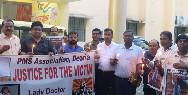 देवरिया। कोलकाता में महिला डॉक्टर की रेप के बाद हत्या मामले में इंसाफ और न्याय की गूंज देश के हर कोने में और तेज होती जा रही है। शहर-शहर, सड़क-सड़क डॉक्टर अपने साथी के साथ रेप और हत्या के बाद इंसाफ मांग रहे हैं। भारतीय चिकित्सा संघ (IMA) ने शनिवार 17.08.2024 को सुबह 6 बजे से रविवार 18.08.2024 को सुबह 6 बजे तक 24 घंटे के लिए आधुनिक चिकित्सा के डॉक्टरों की सेवाओं को राष्ट्रव्यापी रूप से बंद करने की घोषणा की है।