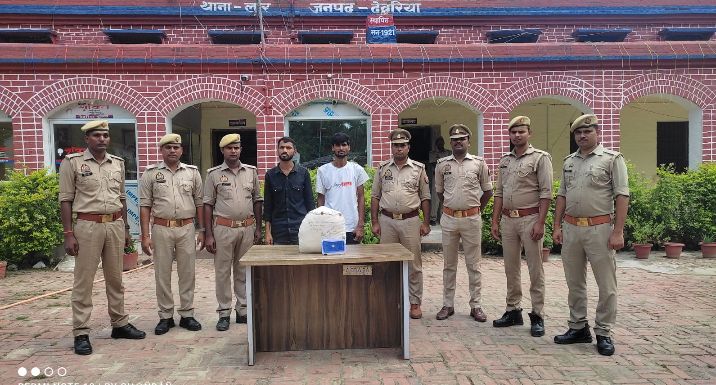 पुलिस के अनुसार चौकी प्रभारी मेहरौनाघाट धर्मेन्द्र कुमार मय हमराहियान हे०का० सुनील सिंह, कां० नीरज चौहान, म०कां० लक्ष्मी विश्वकर्मा, म०कां० कविता देवी व कां० सर्वेश यादव व चालक हे०कां० शशिकान्त यादव मय सरकारी वाहन यूपी 52 एजी 0153 के साथ क्षेत्र में भ्रमण पर थे। इसी दौरान मुखबिर की सूचना पर वहद ग्राम चोरडीहा में सुतावर मोड़ से करीब 200 मी० पूर्व अभियुक्त विक्की गुप्ता पुत्र विजय गुप्ता निवासी कस्बा मीरगंज थाना मीरगंज जनपद गोपालगंज बिहार (सप्लायर) को 06.350 कि0ग्रा0 अवैध गांजा के साथ पकड़ा गया। अभियुक्त की निशानदेही पर ग्राम चोरडीहा में स्थित मकान के दरवाजे पर से दिलीप साहनी पुत्र दरोगा साहनी निवासी ग्राम लच्छावर पोस्ट लच्छावर थाना थावे जनपद गोपालगंज (बिहार) को गिरफ्तार किया गया। जिनको नियमानुसार पुलिस हिरासत में लेकर विधिक कार्यवाही की जा रही है। पुलिस का दावा है कि गिरफ्तारी के वक्त सलेमपुर के पुलिस उपाधीक्षक दीपक शुक्ला भी मौजूद रहे।