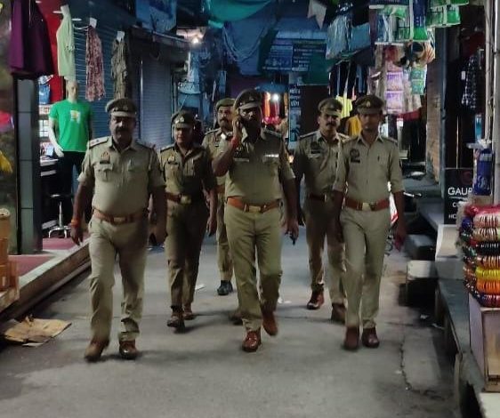 गुरसरांय थानाध्यक्ष वेद प्रकाश पाण्डेय ने पुलिस टीम के साथ नगर में किया पैदल गश्त
