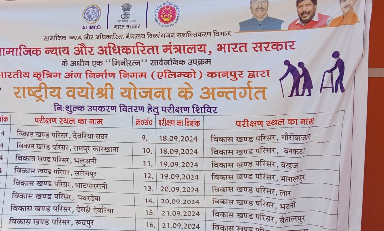 सामाजिक न्याय और अधिकारिता मंत्रालय दिव्यांगजन सशक्तिकरण विभाग की तरफ से भारतीय कृत्रिम अंग निर्माण विभाग द्वारा निशुल्क उपकरण वितरण हेतु आज परीक्षण शिविर लगा। इस परीक्षण