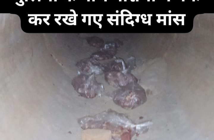 देवरिया। जिले के लार थाना क्षेत्र के कुंडावल तारा जाने वाली सड़क की पुलिया के नीचे दर्जनों पन्नियों में पैक कर फेंके गए संदिग्ध मांस को पुलिस ने बरामद किया। जांच के बाद ही पता चलेगा कि मांस किस प्राणी का है। घटना स्थल के समीप अस्थाई तौर पर अपना डेरा डाल कर एक महीने से रह रहे खानाबदोश परिवारों के डेरे को आक्रोशित ग्रामीणों ने उखाड़ फेंका। ग्रामीणों का कहना है कि ये कृत्य इन्हीं लोगों ने किया है।