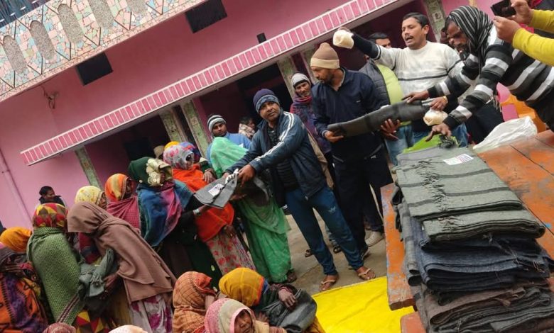 हाड़ कपाने वाली ठंड में बलीपुर टाटा में समाजसेवियों ने गरीबो को दिया कम्बल