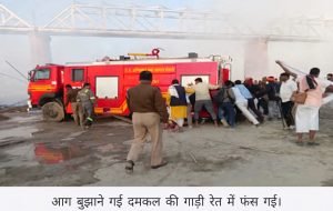 रविवार को मुख्यमंत्री प्रयागराज में ही हैं। वह आईट्रिपलसी में अधिकारियों के साथ बैठक करके निकले ही थे आग की सूचना मिलने पर हड़कंप मच गया। आग लगने के बाद मची अफरा तफरी। आग बुझाने गई दमकल की गाड़ी रेत में फंस गई। आग बुझाने गई दमकल की गाड़ी रेत में फंस गई।