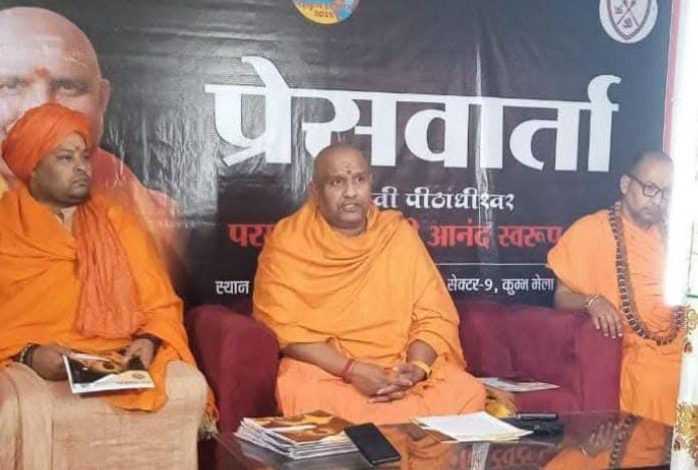 प्रयागराज में कुंभ शिविर में स्वामी आनंद स्वरूप की प्रेसवार्ता