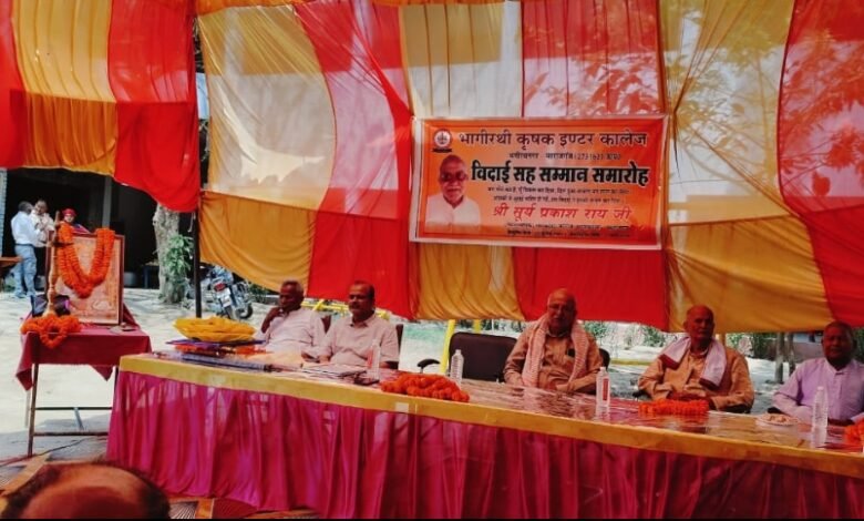 भागीरथी कृषक इंटर कॉलेज में सेवानिवृत्त सहायक अध्यापक सूर्य प्रकाश राय का विदाई समारोह आयोजित किया गया। यह 31 मार्च 2025 को रिटायर हुए है।जिसके बाद विद्यालय परिवार ने इनके सम्मान में विदाई समारोह कार्यक्रम आयोजित किया। कार्यक्रम की अध्यक्षता मनोज कन्नौजिया ने किया। कार्यक्रम में रिटायर शिक्षकों को माला पहना कर तथा स्मृति चिह्न देकर सम्मानित किया।