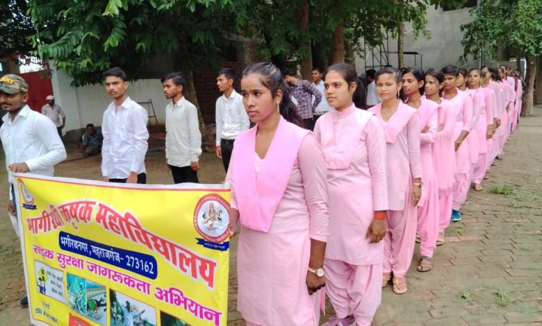 महराजगंज – भागीरथी कृषक स्नातकोत्तर महाविद्यालय में शनिवार को सड़क सुरक्षा तथा यातायात को लेकर कॉलेज के छात्र/छात्राओं द्वारा एक रैली निकाली गई जो स्थानीय बाजार तक गई विभिन्न स्लोगनों का प्रयोग करते हुए आम जनमानस को आए दिन हो रही दुर्घटनाओं से बचाव हेतु यातायात के नियमों की जानकारी दी गई