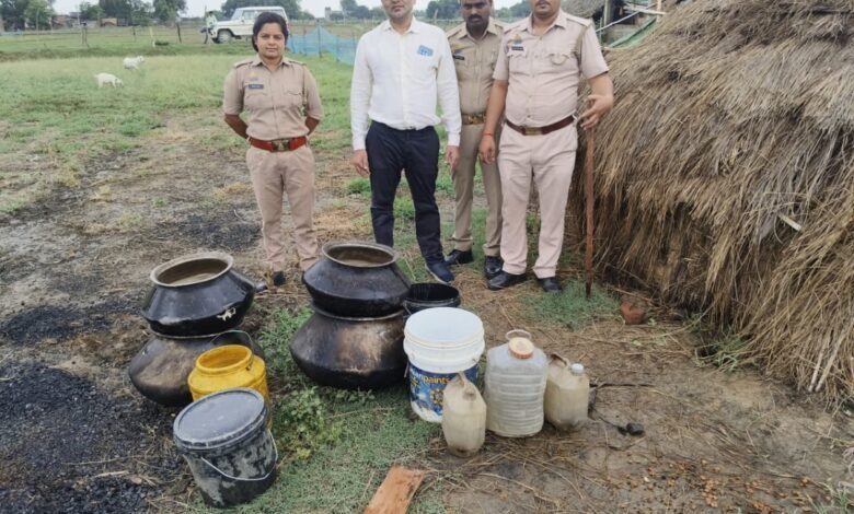 आबकारी विभाग ने की कार्रवाई कच्ची शराब बरामद।