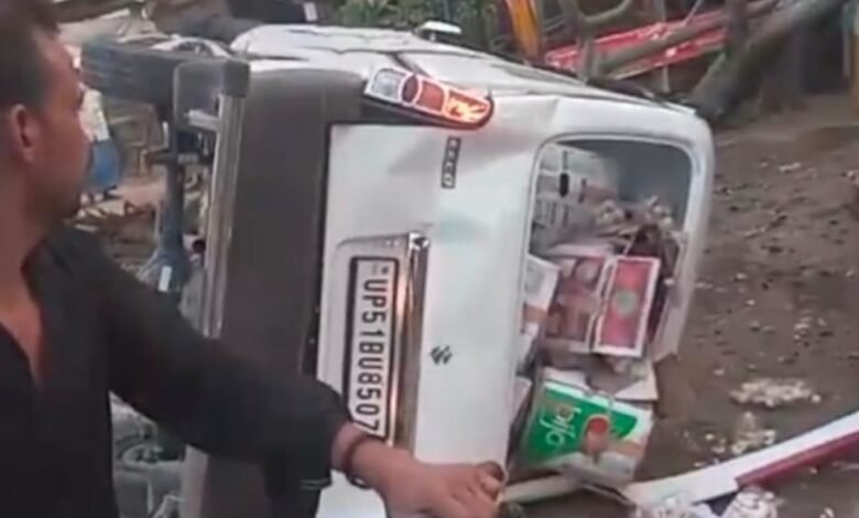 पेड़ से टकराई अनियंत्रित होकर पलटी कार ,चालक बाल-बाल बचा ।