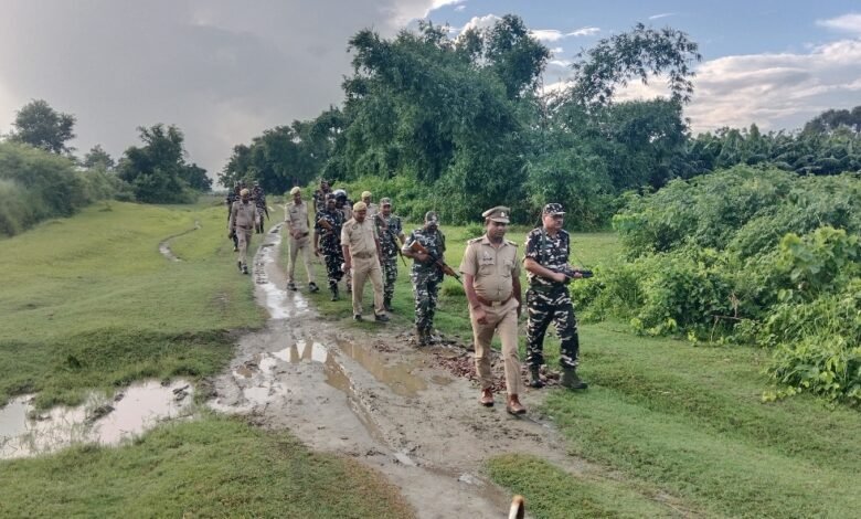 भारत-नेपाल सीमा पर बृहस्पतिवार शाम 6:00 बजे सुरक्षा एजेंसियों ने बॉर्डर पर पैदल फ्लैग मार्च किया। संयुक्त पेट्रोलिंग में पुलिस, एसएसबी बल के जवान शामिल रहे।बहुआर चौकी प्रभारी भूपेंद्र प्रताप सिंह ने जानकारी दी कि मुहर्रम श्रावण मास पर्व को देखते हुए सीमा की पिलर संख्या 497/2 पथलहवा से कनमिसवा बॉर्डर तक पैदल गस्त की गई। इस दौरान आने-जाने वाले लोगों के पहचान पत्र और दोपहिया वाहनों की जांच पड़ताल की गई।सीमा पर भारी संख्या में सुरक्षाबलों की मौजूदगी से कुछ समय के लिए राहगीरों का आवागमन प्रभावित हुआ। गश्त समाप्त होने के बाद सामान्य आवागमन शुरू हो गया। बीओपी पथलाहवा के उप निरीक्षक पूरन शर्मा ने कहा कि मोहर्रम पर्व को देखते हुए बॉर्डर की सुरक्षा चुस्त दुरुस्त रखने के लिए पुलिस और एसएसबी के जवानों ने पैदल मार्च किया। तथा तस्करी रोकने के लिए यह अभियान निरंतर जारी रहेगा। इस मौके पर जवान सुशील सिंह, अंकित यादव, रविकांत उपाध्याय, प्रखर कुशवाहा, आनंद यादव, जितेंद्र गौतम, सोनू शर्मा, तारकेश्वर कुमार, रवि पात्रा, दिलीप कुमार, अवध नारायन, गुड्डू यादव मौजूद रहे।