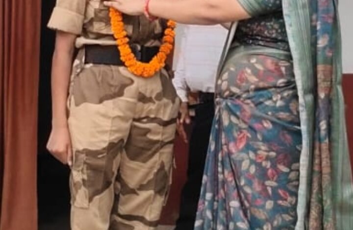 सीआईएसएफ में चयनित छात्रा को विद्यालय ने किया सम्मानित।
