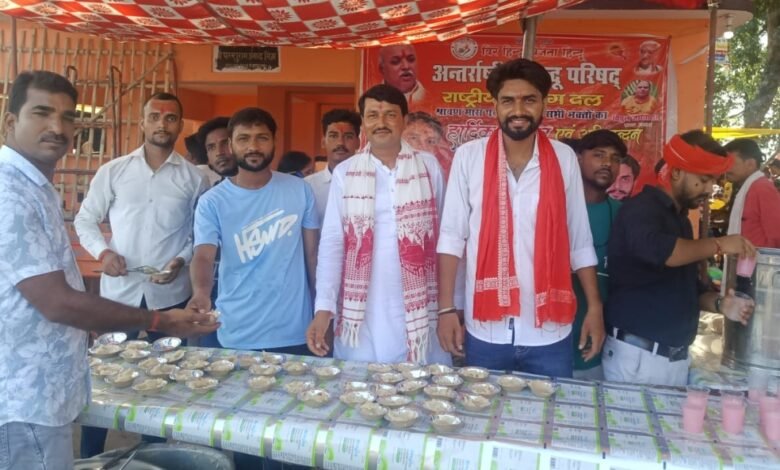 अंतरराष्ट्रीय हिन्दू परिषद, राष्ट्रीय बंजरग दल ने किया प्रसाद वितरण कार्यक्रम।