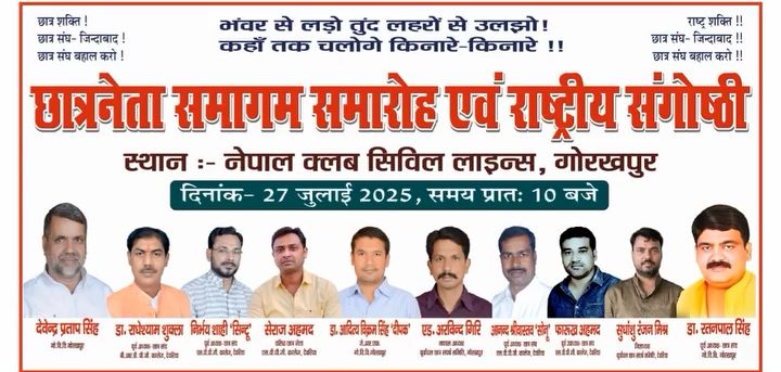गोरखपुर। 27 जुलाई का दिन छात्र राजनीति की दिशा तय करेगा। गोरखपुर के नेपाल क्लब में छात्र नेता समागम समारोह होने जा रहा। इसकी तैयारियां बड़ी जोरों पर है। समागम में बुजुर्ग हो चुके अतीत के छात्र नेता भी उपस्थित होंगे, राजनीति में उच्च पद तक गए छात्र नेता भी होंगे और वर्तमान का युवा जोश भी रहेगा। विभिन्न राजनितिक दलों में मुकाम हासिल किए वरिष्ठ नेता होंगे जो छात्र राजनीति की सीढ़ी से शिखर तक पहुंचे हैं। कहा जाता है कि छात्र संघ लोकतंत्र की वह नर्सरी है, जहां से तप कर नौजवान देश की राजनीति को जनसरोकार और प्रतिबद्धता से भरता है।छात्र संघ चुनाव पर प्रतिबंध होने से देश की राजनीति पर संकट के बादल मंडरा रहे हैं। युवाओं में नेतृत्व की मौलिक क्षमता की बजाए उनका तिरस्कार होने से आज लोकसभा और विधानसभा में पूंजी बाजार के नेता पैसे की बदौलत राजनीति में आ रहे जो जन समस्याओं के समाधान से विरत राजनीति कर रहे हैं। आज भी सूबे से लेकर देश की बड़ी पंचायत में कई नामचीन नेता मंत्री हैं जो छात्र राजनीति से संघर्षो की सीढ़ी चढ़ शिखर पर पहुंचे हैं। आज सरकार में हैं तो उन्हें छात्र संघ की बहाली के लिए प्रबल प्रयास करना चाहिए।