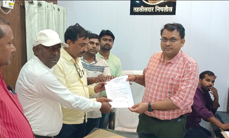 निचलौल शिक्षक संघ ने तहसीलदार को सौपा ज्ञापन।