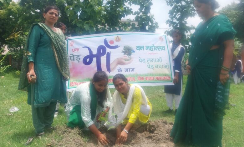 एक पेड़ मां के नाम अभियान के तहत विद्यालय में किया गया पौधारोपण।