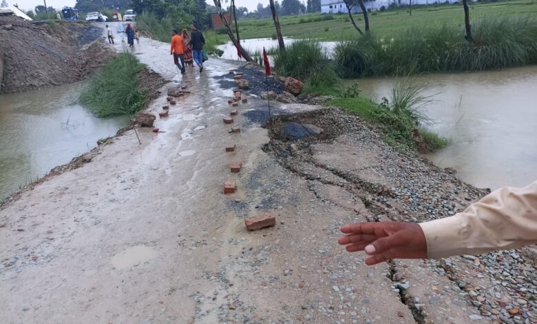 लार विकास खंड के चनुकी से जो सड़क सोहगरा मंदिर को जाती है, उस सड़क पर लार विकास क्षेत्र के दीक्षितौली गांव स्थित दोन पुलिया का निर्माण हो रहा है। पुलिया के बगल में अस्थायी बाईपास अप्रोच सड़क बनाई गयी है। दो दिन की बरसात के चलते बाईपास का लगभग आधा हिस्सा पानी की तेज धार से बहकर क्षतिग्रस्त हो गया है। इस चलते सोमवार की सुबह से सोहगरा धाम शिव मंदिर के चनुकी-सोहगरा मार्ग पर चारपहिया वाहनों का आवागमन ठप हो गया। यूपी-बिहार की सीमा को जोड़ने वाला है इस मार्ग पर आवागम प्रभावित होने से चारपहिया कावरियों को काफी कठिनाई उठानी पड़ी। ग्रामीणों का कहना है कि गर्मी के सीजन में पुलिया का काम पूरा हो गया होता तो बरसात के सीजन में यह दिक्क़त नहीं आती। चारपहिया वाहनों से चनुकी के रास्ते सोहगरा जाने वाले कावरिये बहुत परेशान हुए। विशेष रूप से महिला शिव भक्तों को काफी दूर पैदल चलने में परेशानी हुई। स्थानीय नागरिकों ने कार्यदायी संस्था से क्षतिग्रस्त बाईपास को शीघ्र ठीक कराये जाने की मांग की है।