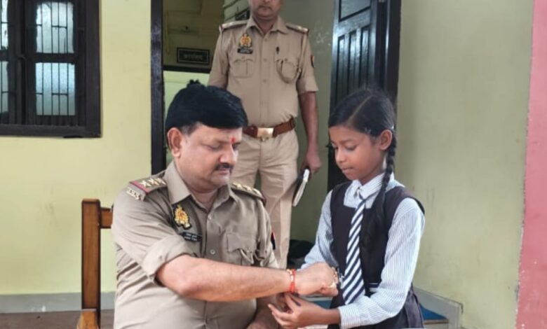 स्कूल की बच्चियों ने थानाध्यक्ष को बांधी राखी।