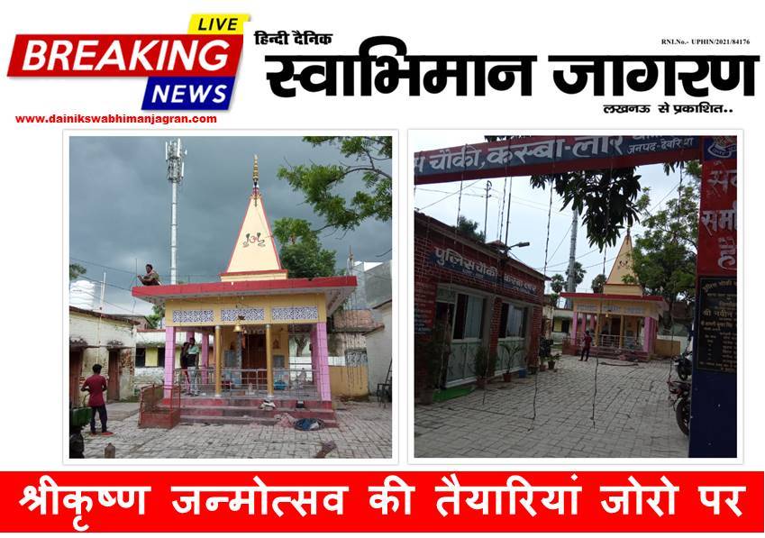 स्वाभिमान जागरण संवाददाता, देवरिया। पुलिस महकमे में श्रीकृष्ण जन्मोत्सव मनाए जाने की पुरानी परंपरा रही है। लगभग हर थाने पर जन्माष्टमी धूम धाम से मनाया जाता है। इस वर्ष जनपद के लार कस्बा स्थित पुलिस चौकी पर श्रीकृष्ण जन्मोत्सव धूम धाम से मनाया जाएगा। चौकी परिसर में स्थित शिव मंदिर का रंग रोगन कराकर बेहतर और आकर्षक ढंग से सजाया जा रहा है।