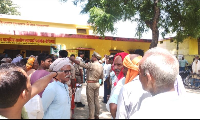 कड़ी धूप में खाद के लिए किसानों की लगी लंबी कतार।
