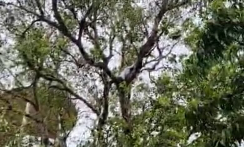 घंटों तक पेड़ पर रहा बैठा,तमाशबीन बने लोग।