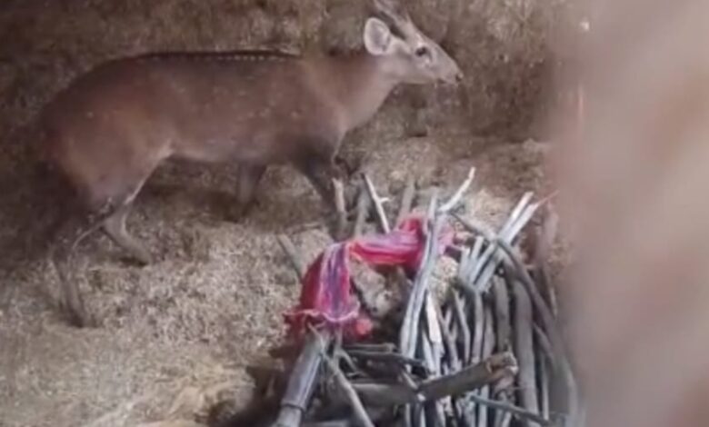 सोहगी बरवा वन्य जीव प्रभाग निचलौल वन रेंज के बहुआर खुर्द गांव में गुरुवार को हिरण जंगल से भटक कर गांव में पहुंच गया। गांव के कुत्तों को दौड़ने के बाद हिरण पास के करीब मनोज यादव के घर में घुस गया।जिसकी सूचना ग्रामीणों ने ग्राम प्रधान श्यामसुंदर गुप्ता को दी, ग्राम प्रधान ने इसकी सूचना वन विभाग को बताई, सूचना मिलने पर पहुंची वन विभाग की टीम में वन दरोगा अशोक सिंह, विजय सिंह, मोहन, लल्लन आदि ने मौके पर पहुंचकर हिरण को रेस्क्यू कर लिया गया। वन क्षेत्राधिकारी सुनील राव ने बताया कि जंगल से भटक कर हिरण बहुआर खुर्द मनोज यादव की घर में घुस गया था। सूचना पर पहुंची वन विभाग की टीम ने हिरण को सुरक्षित रेस्क्यू करके निचलौल रेंज के उत्तरी बीट में छोड़ दिया गया।
