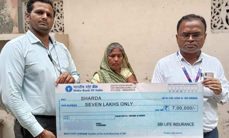 नगर के अमरपुरवा मुहल्ला निवासी शारदा सिसवा नगरपालिका में कर्मचारी था। शारदा ने सिसवा स्टेट बैंक की कॉमर्शियल शाखा में खाता खुलवाया था। जुलाई 2022 में शारदा एसबीआई लाइफ इंश्योरेंस में लाइफ लोन इंश्योरेंस स्मार्ट स्वधन प्लस के तहत लोन कवर कराया था। नॉमिनी में शारदा ने अपनी पत्नी का नाम दर्ज कराया था। सालाना 34 हज़ार रुपए किश्त के रूप में एक प्रीमियम जमा किया था। इसी बीच 9 अप्रैल 2022 को घुघली पेट्रोल पंप के पास सड़क दुर्घटना में शारदा की मृत्य हो गई। इसकी सूचना मिलने पर एसबीआई लाइफ इंश्योरेंस के बीडीएम देवेंद्र पांडेय व फील्ड ऑफिसर दिलीप मिश्रा की टीम ने मृत्यु प्रमाण सहित अन्य कागजातों की जांच की। जांच में सब कुछ ठीक मिला। जिस पर शाखा प्रबंधक मनीष कुमार सिंह के नेतृत्व में टीम द्वारा मृतक के घर जाकर उसकी पत्नी को सात लाख रुपए का चेक दिया गया।