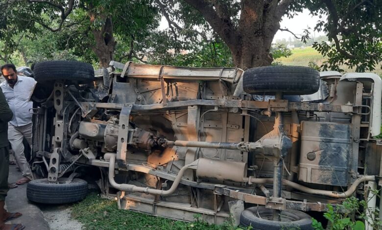 रोड एक्सीडेंट में बोलेरो पलटी, बाइक सवार गंभीर रूप से घायल