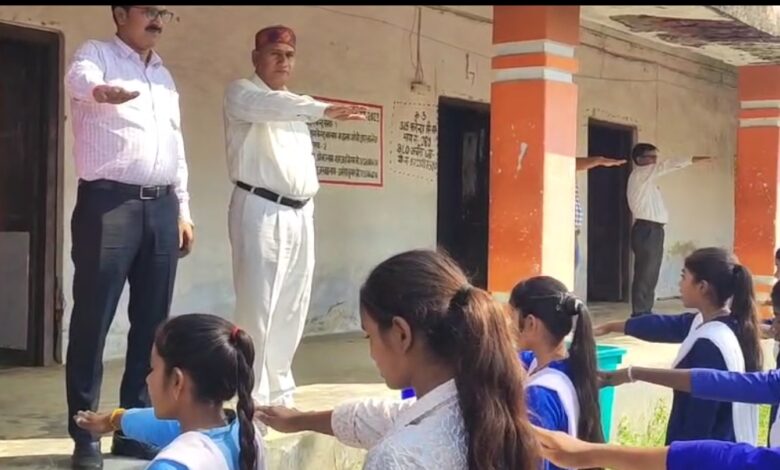 महात्मा गांधी इंटर कॉलेज में सड़क सुरक्षा जागरूकता अभियान के तहत दिलाई गई शपथ।