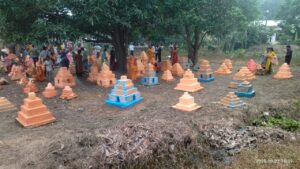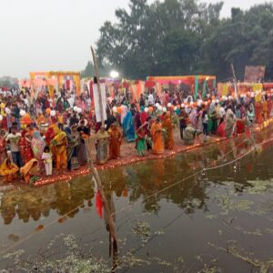 छठ वेदियों पर चढ़ा राजनितिक रंग, गेरुआ रंग की बेदी को नीला करने पर पहुंची पुलिस