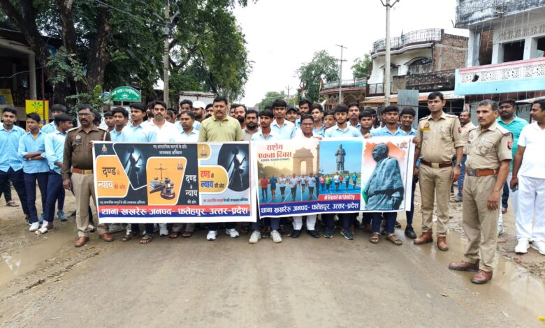 कार्यक्रम का शुभारंभ सरदार वल्लभभाई पटेल की फोटो में माल्यापढ कर किया गया उसके बाद थाना परिसर से लेकर जवाहर इंटर कॉलेज तक