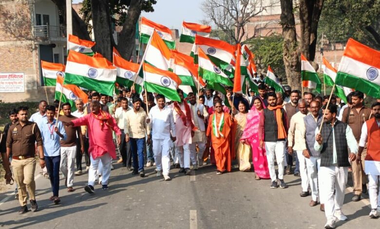 फतेहपुर धाता नगर में लौह पुरुष सरदार वल्लभभाई पटेल की 150वीं जयंती के अवसर पर बुधवार को ‘एक भारत, आत्मनिर्भर भारत’ अभियान के तहत धाता नगर से एक पदयात्रा का आयोजन किया गया। इस पदयात्रा में बड़ी संख्या में छात्रों, युवाओं, शिक्षकों और सामाजिक कार्यकर्ताओं ने भाग लिया।